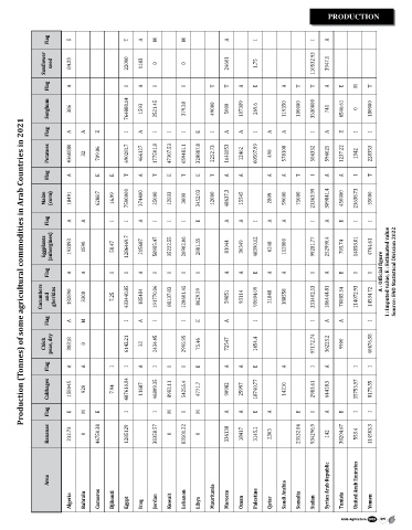 Production (Tonnes) of some agricultural commodities in Arab Countries in 2021