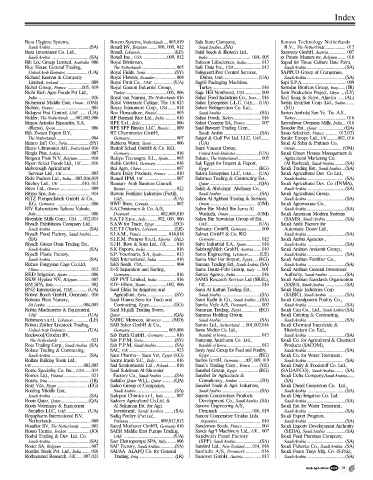 Rosier SA, Belgium ......................... 007 SAF Factory, Saudi Arabia ..............(SA) Sanford Ltd., New Zealand .......014, 016 Saudi Fisheries Co., Saudi Arabia .(SA)