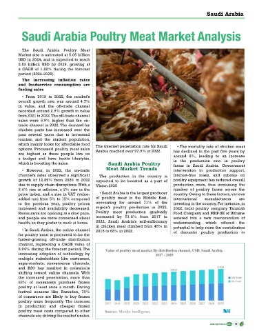 • In Saudi Arabia, the online channel 2016 to 68% in 2022. of domestic poultry production to