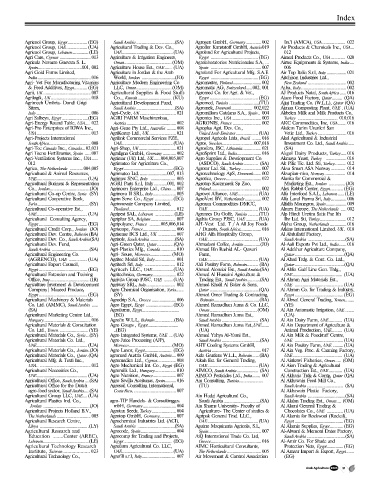 Agri Tecno Fertilizantes, Spain ..... 007 Agraligna GmbH, Germany ............ 002 AgroSprint Ltd., India ...................... 016 Akgol Dairy Products, Turkey ..... 016