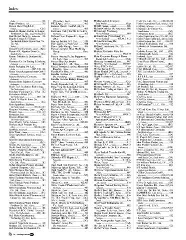 Indonesia.......................................... 016 Hendry Hydraulic Ltd., UK .......... 002 Horticoop B.V, The Netherlands ...... 005 Consulting, Italy ............................ 018 Indian Foodtech Ltd., India ....... 016 Int'l Center for Palms & Dates, Iran .................................................. 004 Islam Commercial Enterprises,