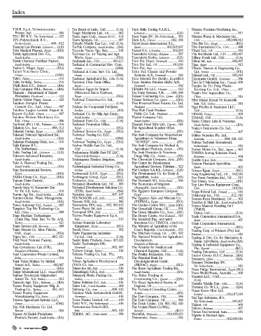 Tabuk Chemical Fertilizer Factory, Techmark Inc., USA ................ 005,017 Tetra Pak Hoyer, Denmark ............. 010 Tifone Srl, Italy .........................002,007 Trouw Nutrition, USA .................... 009 Uniscope Inc., USA ......................... 014 Utien Pack Co.Ltd., China ............. 016 GmbH,Germany..008