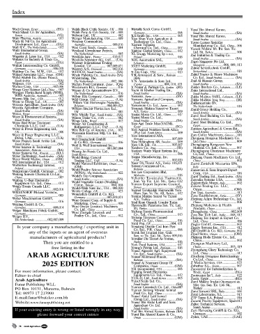 Wamco Corp., USA .................002,006 Wiedemann KG, Germany ............ 016 Y Nassar & Partners Co, Jordan .(JO) Zaidan Brothers Co., Lebanon ......(LE)