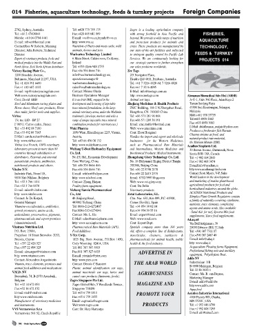 014 Fisheries, aquaculture technology, feeds & turnkey projects Foreign Companies