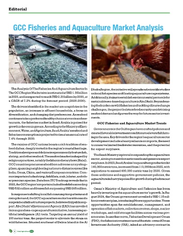 GCC countries procure seafood from a diverse array of sup- surpluses. In 2023, Saudi Arabia’s aquaculture production hit