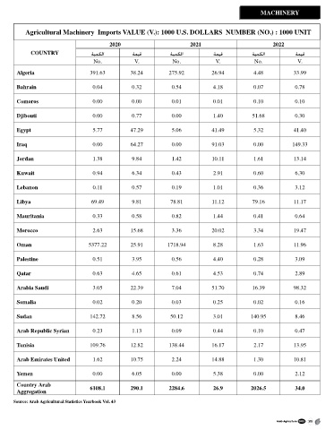 Agricultural Machinery Imports VALUE (V.): 1000 U.S. DOLLARS NUMBER (NO.) : 1000 UNIT