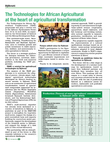 able agriculture in Djibouti. Business Forum represents a unique constraints, thanks to TAAT’s expe-