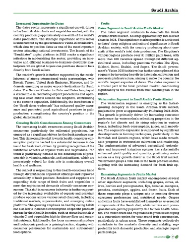 accessibility of fresh produce. Retailers and suppliers are The Saudi Arabian fruits market encompasses several