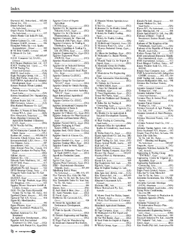 Egyptian American Co. ForEgyptian American Co. For Egypt ............................................(EG) (EG) El Mokkadem Co For Export and LLC, Oman............................... (OM) (OM) Evagro for Desert Reclamation and and Fardan Agricultural Est., Est., UAE .... (UA) (UA) Fiap Fischtechnik GmbH, Germany ....y.... FMC Chemical Sprl, Sprl, Egypt ......... (EG) (EG)