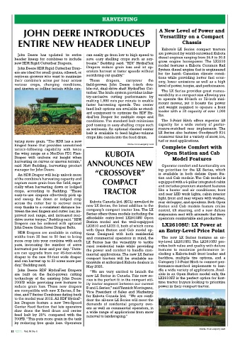 John Deere RDF HydraFlex Drapers “We are very excited to launch the dle a wide variety of applications. Avail-