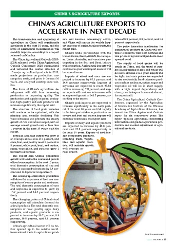 agriculture in China will significantly and China will remain the world’s larg- percent respectively.