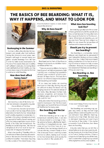 “In the summer, the external tempera- Bee bearding and swarming may ap-