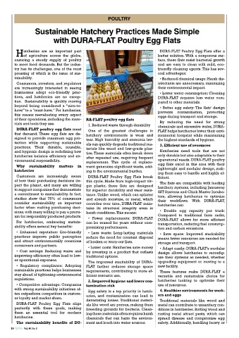 DURA-FLAT poultry egg flats meet One of the greatest challenges in FLAT helps hatcheries lower their envi-