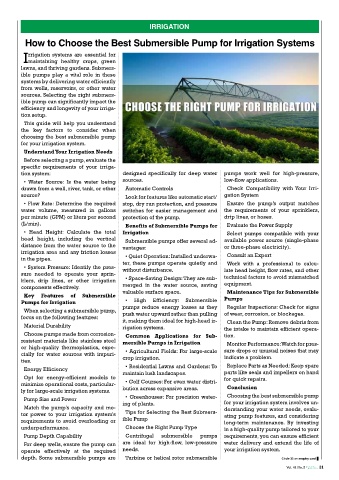 tor power to your irrigation system's Tips for Selecting the Best Submers- ating pump features, and considering