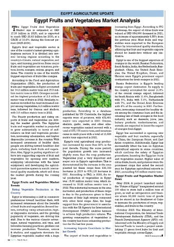 the market growth during the coming 2021. According to FAO, in 2020, the to- Egypt Fruits and Vegetables Market