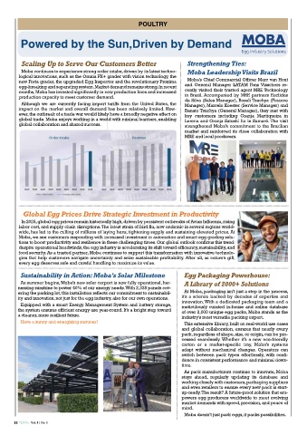 Moba, we see customers responding with increased investment in automation and smart egg grading solu-