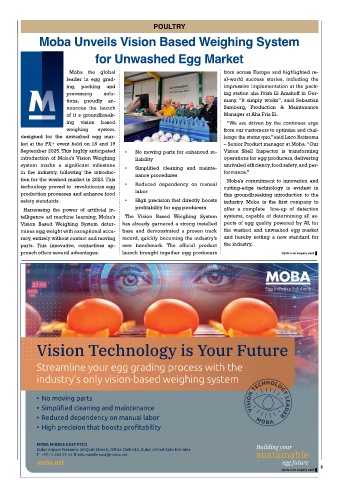introduction of Moba’s Vision Weighing liability operations for egg producers, delivering