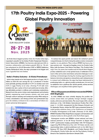 novation, collaboration, and industry growth. With its 17th edi- ing a pivotal role—through its flagship event, the Poultry India
