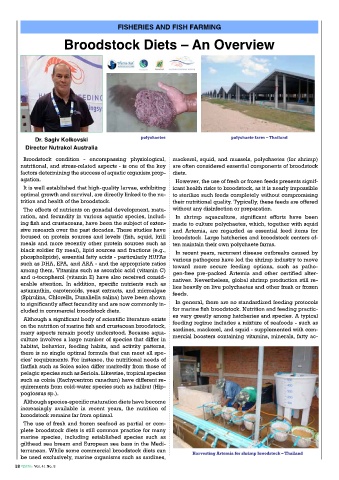 Broodstock condition - encompassing physiological, mackerel, squid, and mussels, polychaetes (for shrimp)