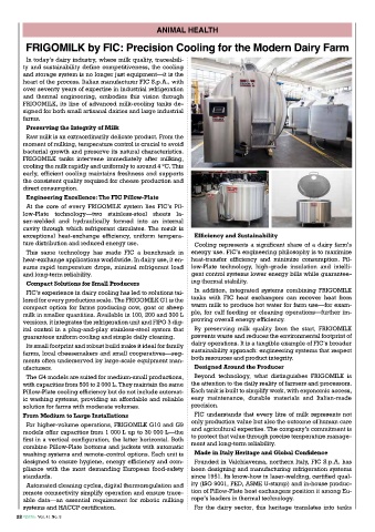 FIC’s experience in dairy cooling has led to solutions tai- In addition, integrated systems combining FRIGOMILK