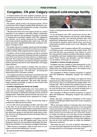 cold chain solutions. By combining Congebec’s expertise To be developed with CN’s construction partner Mat-