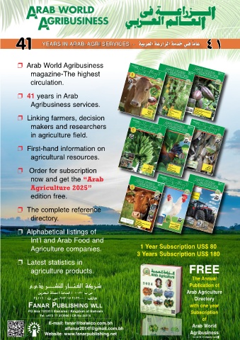 AT US$80 THE ARAB WORLD'S LARGEST CIRCULATION AGRICULTURAL MAGAZINE AT US$80
