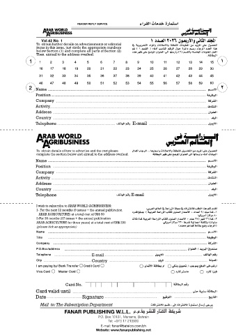 I wish to subscribe to ARAB WORLD AGRIBUSINESS: :يبرعلا لماعلا في ةعارزلا ةلمج في كاترس�لال بلطلا اذه مكل مدقأا