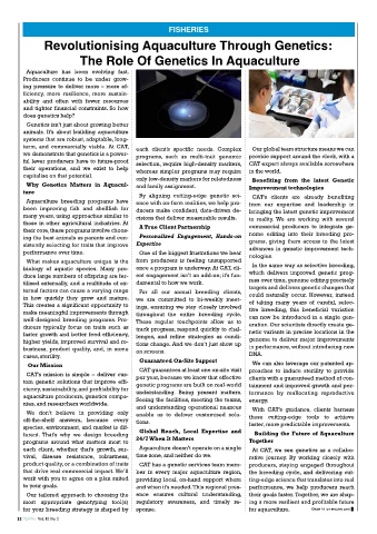 each client, whether that’s growth, sur- Aquaculture doesn’t operate on a single At CAT, we see genetics as a collabo-