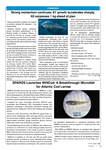 “Pool K0 continues to deliver strong efficient feed utilization. • Standing biomass in pool: 354 tonnes