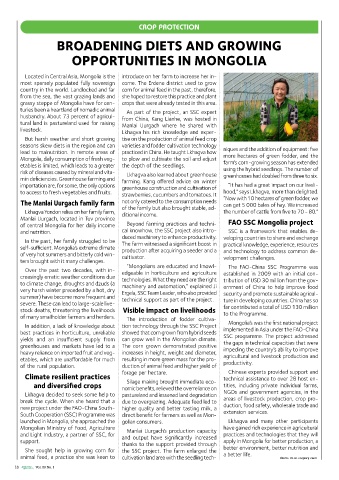Mongolia, daily consumption of fresh veg- to plow and cultivate the soil and adjust farm’s corn-growing season has extended