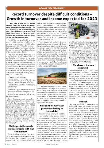 compared to the very positive develop- the 2022 financial year: This included coming months is above average. CLAAS