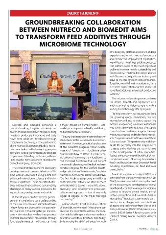 biotech company, BiomEdit. the animal’s physiology will unlock real sus- feed), and Trouw Nutrition (livestock feed)