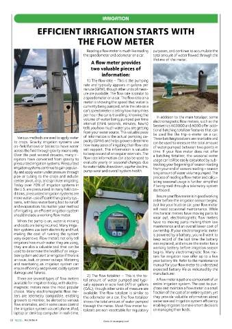 used to determine the health of an irriga- begins. Many electromagnetic flow me-