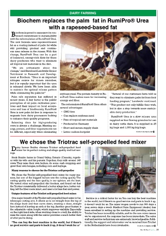 while eliminating the palm fat” soybean meal. The protein density in Ru- “Several of our customers have told us