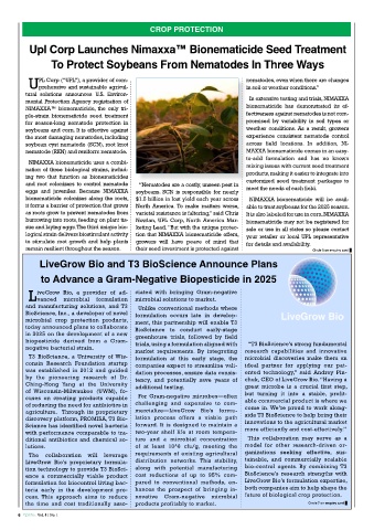 agriculture. Through its proprietary mercialize—LiveGrow Bio’s formu- side T3 BioScience to help bring their