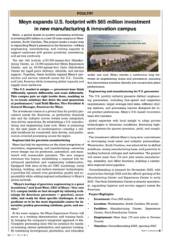 The investment comes at a pivotal time for poultry pro- cal product preferences. Meyn’s U.S.-based innovation