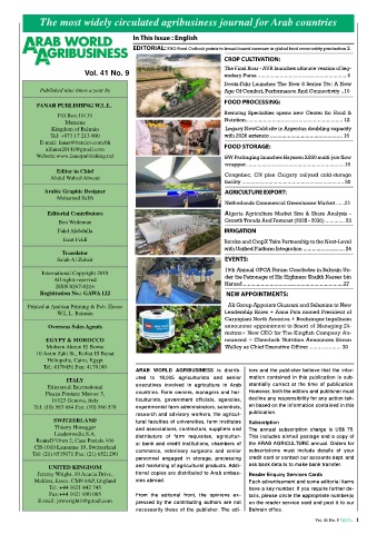 Tel: 4170451 Fax: 4170180 ARAB WORLD AGRIBUSINESS is distrib- tors and the publisher believe that the infor-