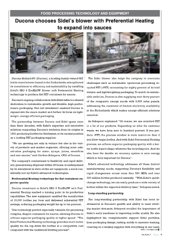 complex, shaped containers for sauces, allowing Ducona to Sidel’s early machines in improving bottle quality. He also