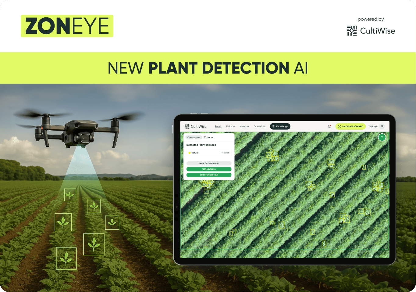 Zoneye is available worldwide to CultiWise subscribers and costs 5-20 euros per hectare. Optional CultiWise drones start at 4,200 euros.