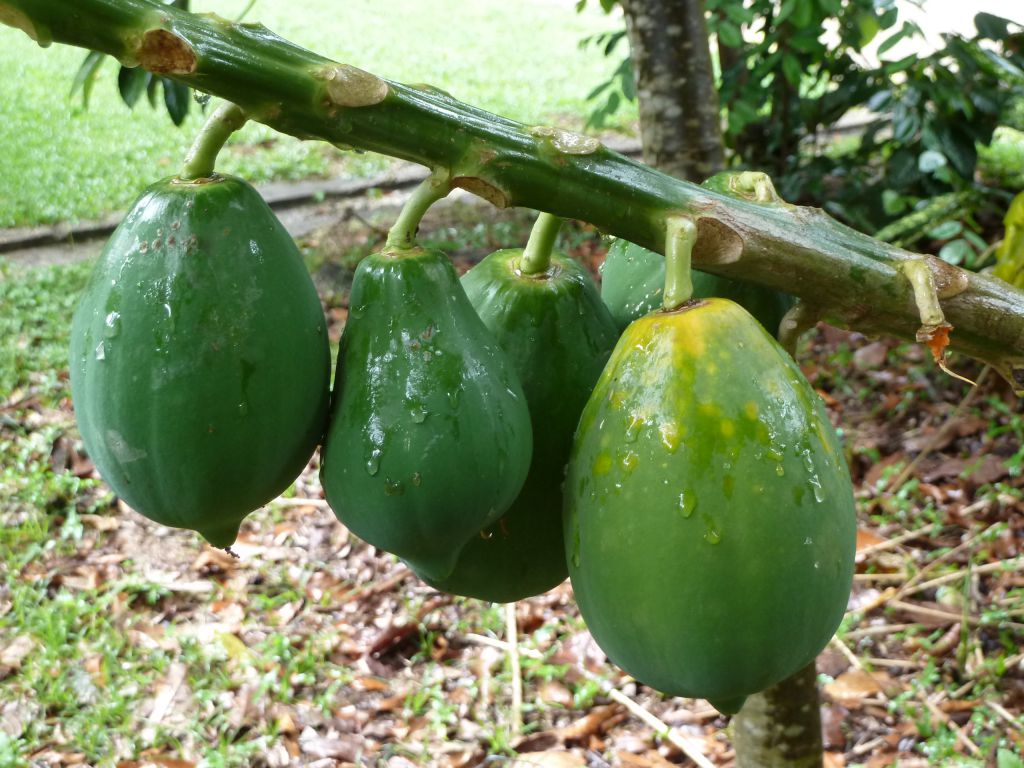 Papaya exhibits several oddities. Two particular peculiarities are papaya plants being dioecious (male and female flowers on separate plants) and also showing cauliflory. This term describes the way in which the flowers, and therefore the fruit, are borne which is directly on the main stem or main branches and also the case for cocoa.
